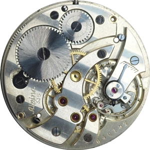 - Identification: Movement marked with Alpina 335. Listed in the 1944 supplement to the Flume catalog from 1942.