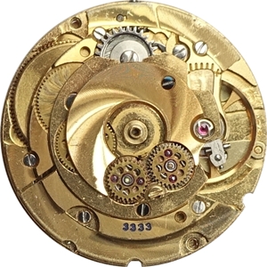 - Identification: Movement marked with ETA 2724 under the balance wheel, with HELVETIA on the rotor and with 3333 on the wheel train bridge.